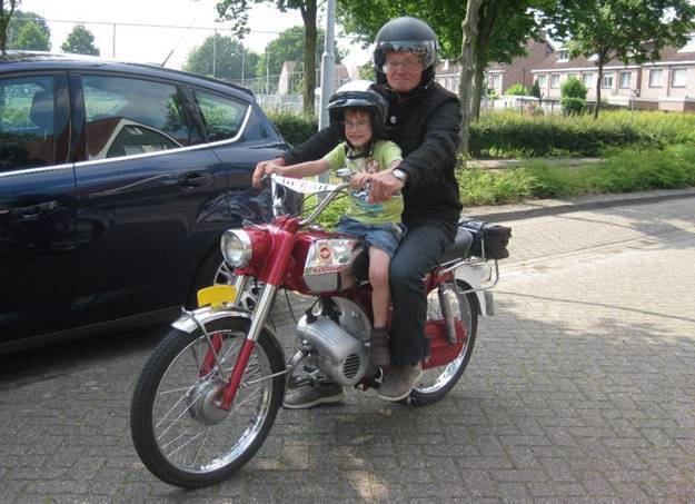 Nadat we met de club een weekendje zuid-limburg gedaan hadden heb het 3-versnellings-hand blok met geforceerde luchtkoeling vervangen door een 4-versnellings-voet-blok met een wat betere cilinder en kop. Want bergop was het niet echt leuk.
