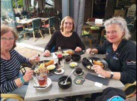 Vanuit Neer gingen we naar de lunch-pauze bij cafe “Dennenoord”. Waar intussen de bezemwagen ook aangekomen was. Daar konden we genieten van een heerlijke kom soep met brood. Helaas konden ze niet voor ander eten zorgen, omdat er onvoldoende personeel was. Maar iedereen was toch voldaan, door de flinke kom soep, toen we de rit vervolgde. Richting Heythuijzen. In Heythuijzen was de weg door het centrum afgezet vanwege de “Vrijmarkt”. Maar er was geen omleiding uitgezet, dus was het “peentjes” zweten voor Lia om weer op de route achter Heythuijzen uit te komen, maar ze had het prima opgelost. Ook de bezemwagen kon weer niet volgen. Erg vervelend.